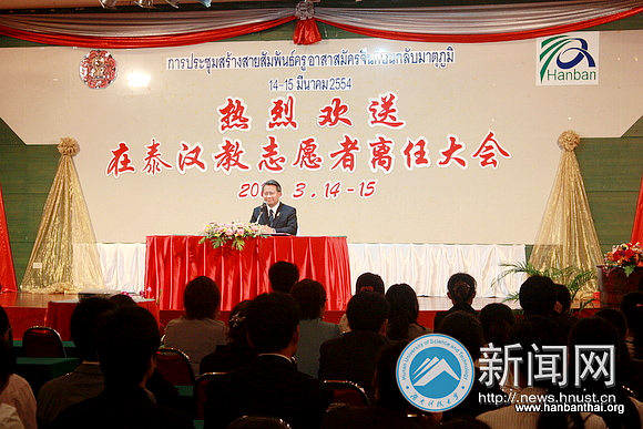 3月10日,中国国家汉办驻泰代表处联合泰国教育部基础教育委员会在曼谷举办了“热烈欢送在泰汉教志愿者离任大会”。大会上,湖南省队队长魏曦作为志愿者代表发言,感谢国家汉办、泰国教育部为志愿者提供了增长才干、扩宽视野的机会。离任之际,中泰双方联合表彰了本年度优秀汉语教师志愿者,湖南省共3人荣获“优秀国际汉语教师志愿者”称号。获奖的3人均来自我校,他们分别是魏曦、罗龙(07级对外汉语专业)、黎晴(07级汉语言专业)。