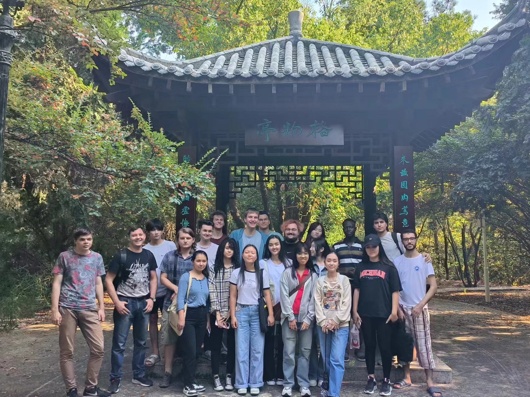 外籍师生与志愿者们在生物园的合影