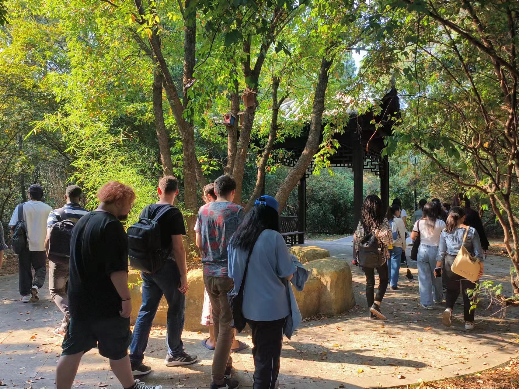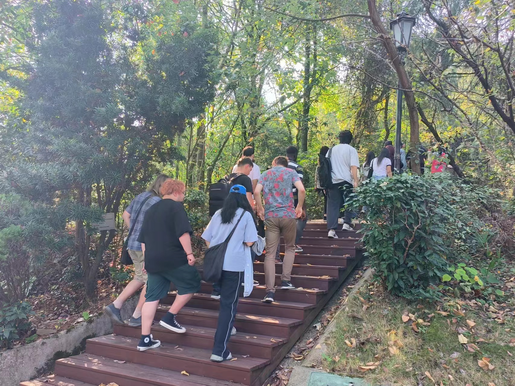 外籍师生前往格物亭观赏国家级保护植物“黄枝油杉”