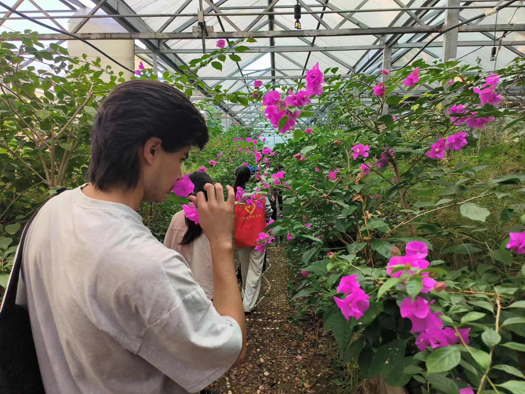 留学生被美丽的三角梅深深吸引
