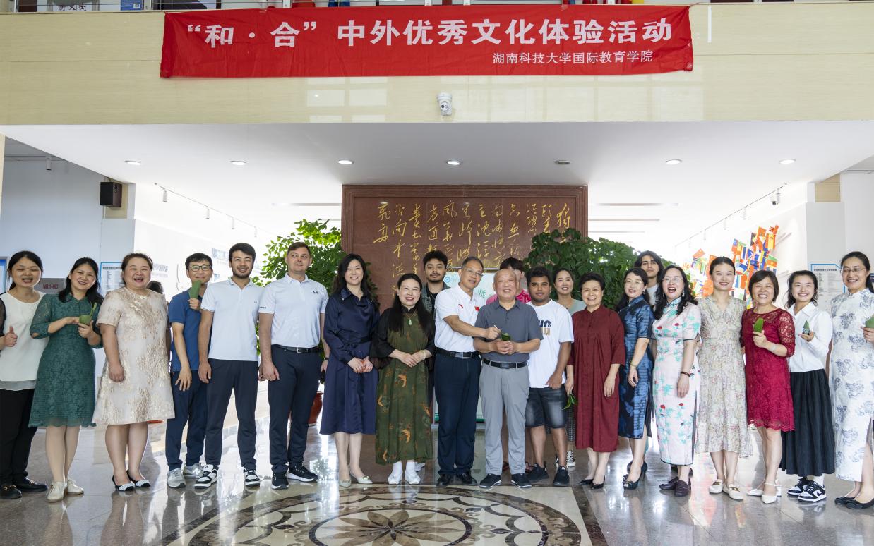 浓浓粽香情,暖暖沁人心。为传承中国的传统文化,让中外师生体验中华优秀传统文化,感受中国传统节日氛围,6月7日下午,永利yl23411国际教育学院在国际教育楼举办“品粽思贤,情浓端午”活动。本次活动由旗袍文化协会与我院联合举办,教师彭彩霞与曾绛担任主持人,永利yl23411校党委书记唐亚阳、副校长李琳、原齐白石艺术学院院长曾景祥、国资处处长刘婷、潇湘学院院长禹旭才、原机电学院党委书记郭迎福、国家人社部一级茶艺师刘艳、旗袍协会及国际教育学院全体师生共同出席。