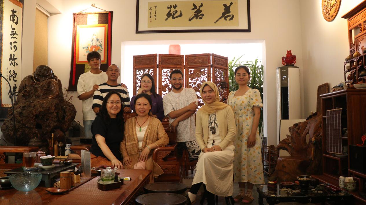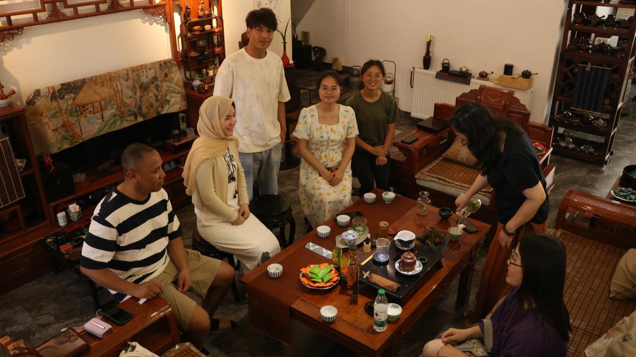 2024 年 7 月 18 日,永利yl23411国际交流处处长吕爱晶携数名留学生前往湘潭市若茗苑,开展国际教育学院“和·合”中外优秀文化体验活动系列之十四,活动主题为“走进茶艺课堂,构筑国际交流桥梁”,若茗苑茶空间创始人刘艷老师热情引领留学生们领略丰富多彩且底蕴深厚的茶文化。
