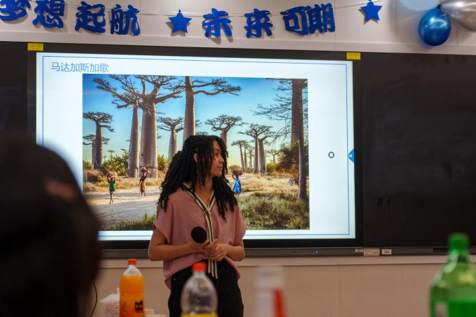 紧接着,来自马达加斯加的同学美丽,带来了动人的歌曲表演。她的歌声如同天籁之音,让人陶醉其中。观众们纷纷为她送上热烈的掌声和欢呼声。