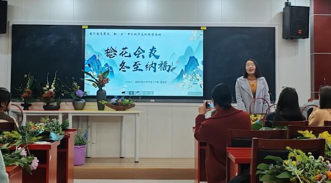 冬至阳生,岁会律转,2024年12月21日,永利yl23411国际教育学院成功举办以“捻花会友,冬至纳福”为主题的“和•合”中外传统文化体验活动。该活动由学生工作部廖金花老师主讲、国际教育学院留学生管理科江岁老师主持。以插花艺术为媒介,展现了一场传统文化与现代创意交织的盛会,吸引了许多留学生前来体验。