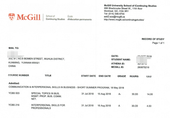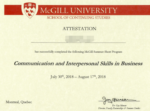 图:麦吉尔大学专业课项目证书