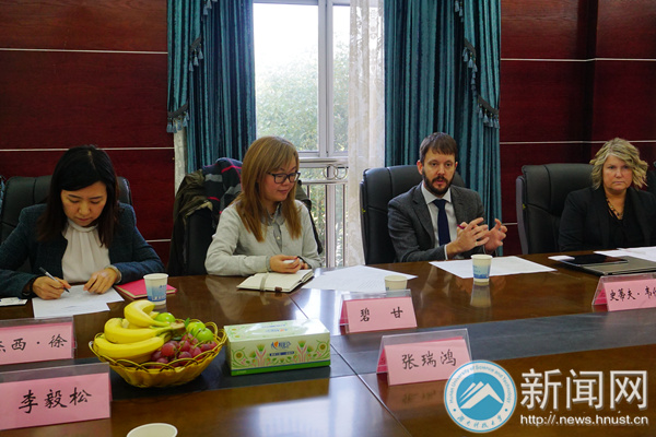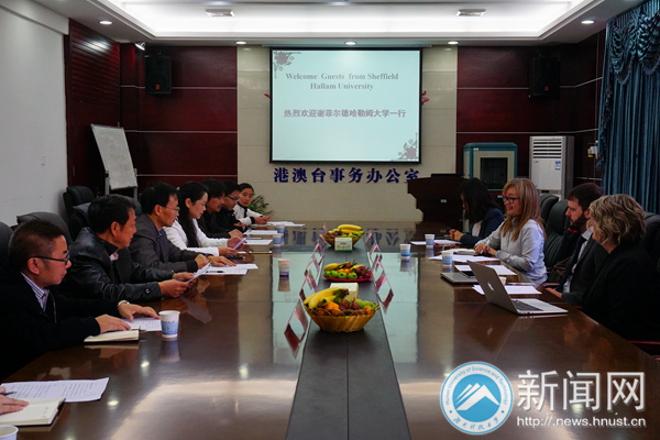11月11日上午,英国谢菲尔德哈勒姆大学国际部招生主任史蒂夫·韦伯一行来校交流,交流会议在国际教育楼二楼会议室召开,相关部门和学院负责人与会,会议由对外联络处处长张瑞鸿主持。