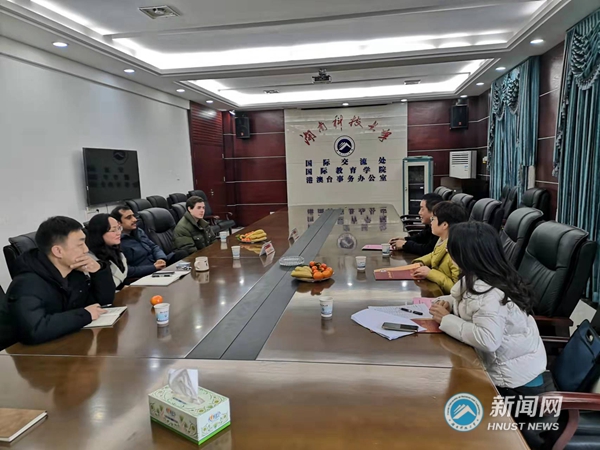 2月14日,湘潭市科技局副局长赵红波、外专科科长刘浪舟、外专科副科长周楚一行三人来校慰问我校外籍专家。外籍专家代表Najid、Bjoern,国际交流处处长吕爱晶、科技处副处长张少伟等参加活动。