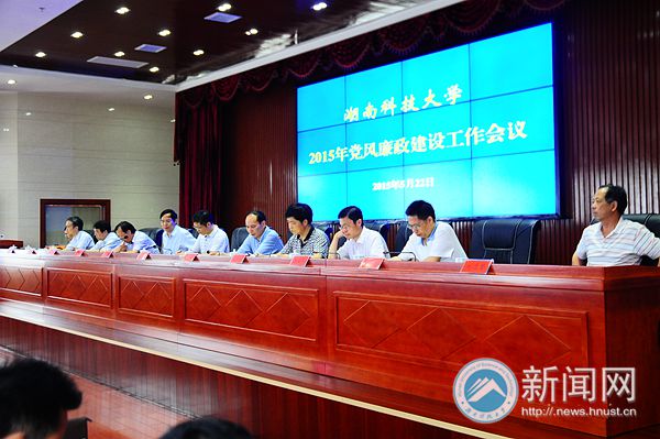522下午,我校2015年党风廉政建设工作会议在综合楼A附楼五楼报告厅召开。全体校领导出席,校纪委委员、全体处级(实职)领导干部,研究生院、招就处、财务处、国资处、审计处、基建处、后勤处科长,各直属党委(总支)纪检委员参加大会。