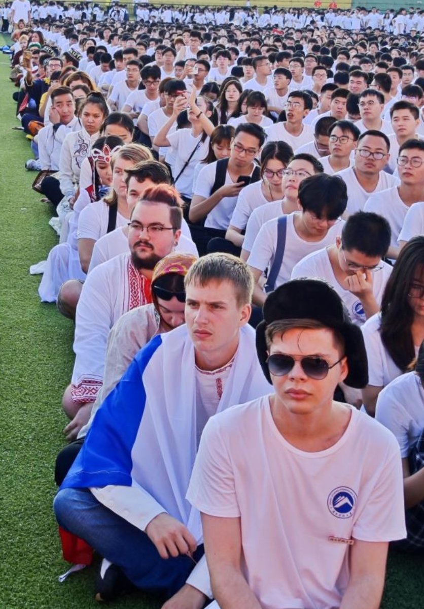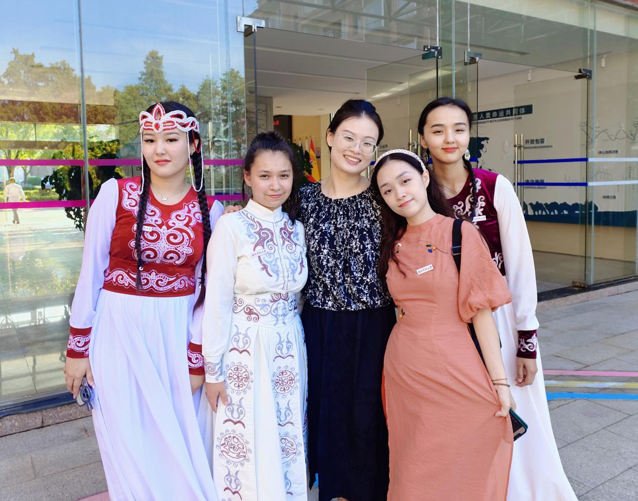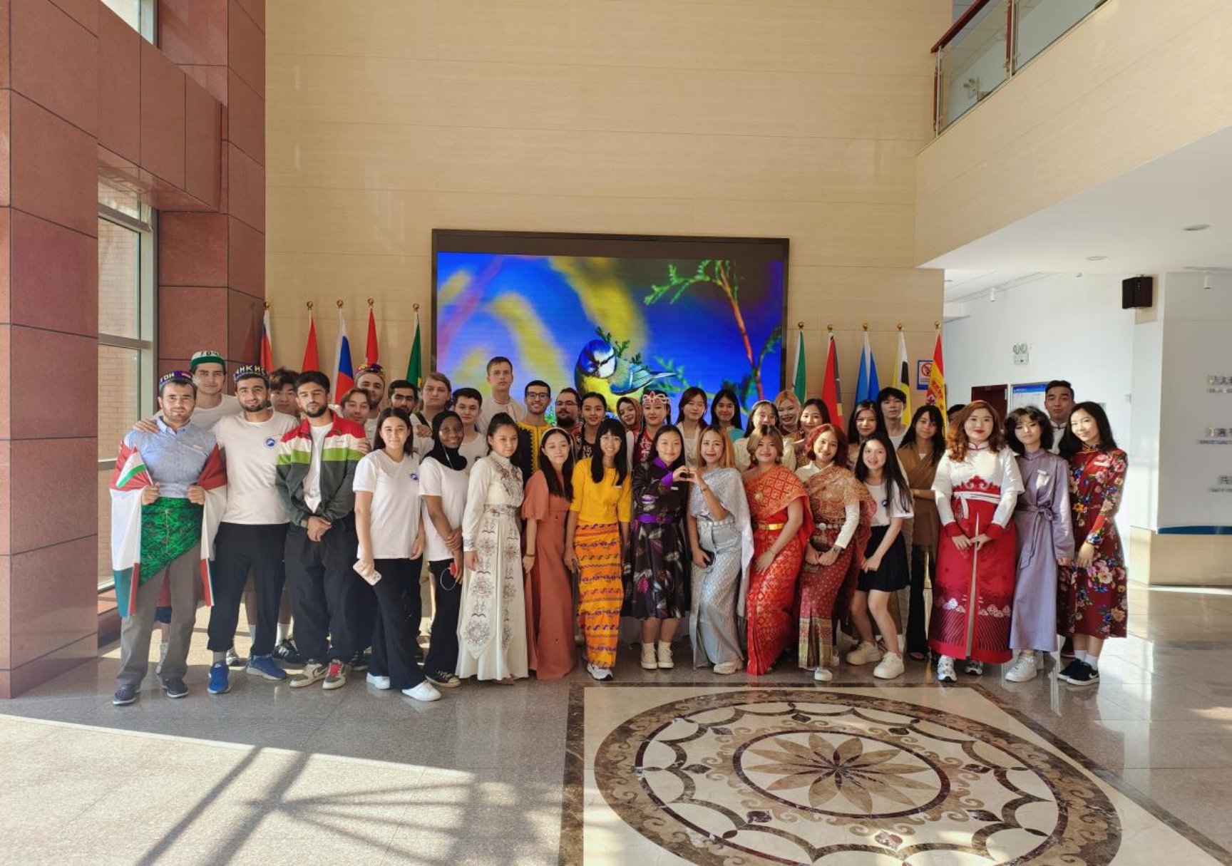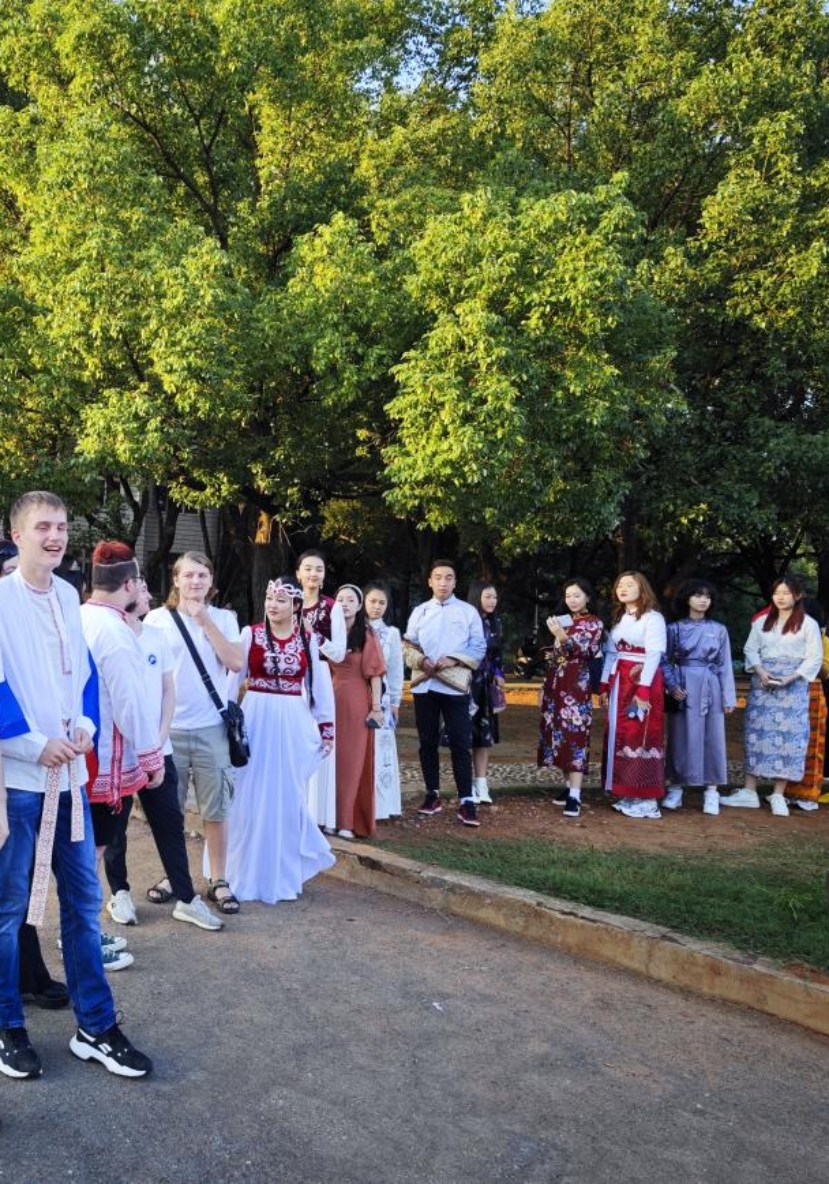 国际教育学院45名新生身着民族服饰盛装参加本次开学典礼。他们分别来自泰国、塔吉克斯坦、俄罗斯等15个国家。